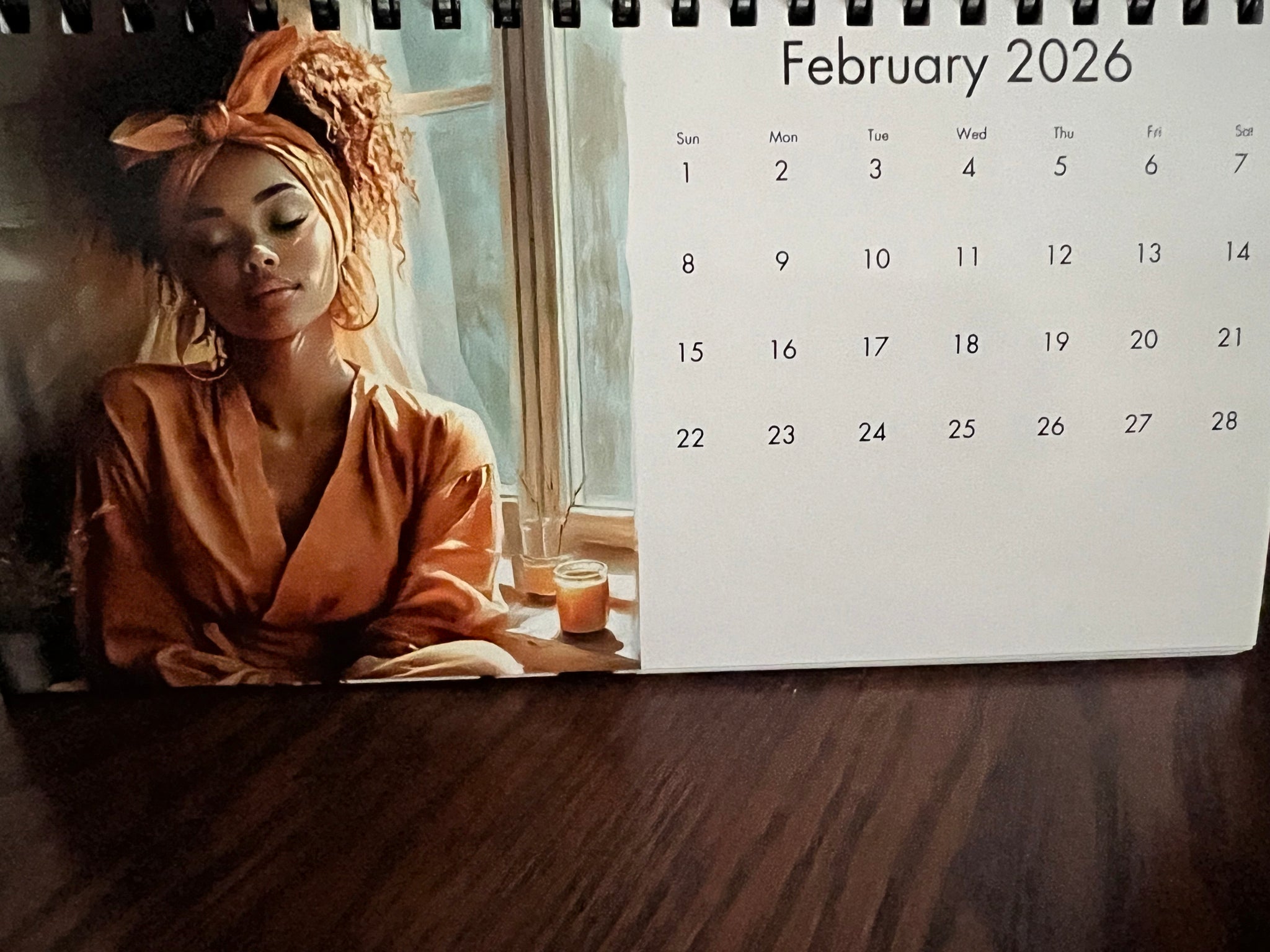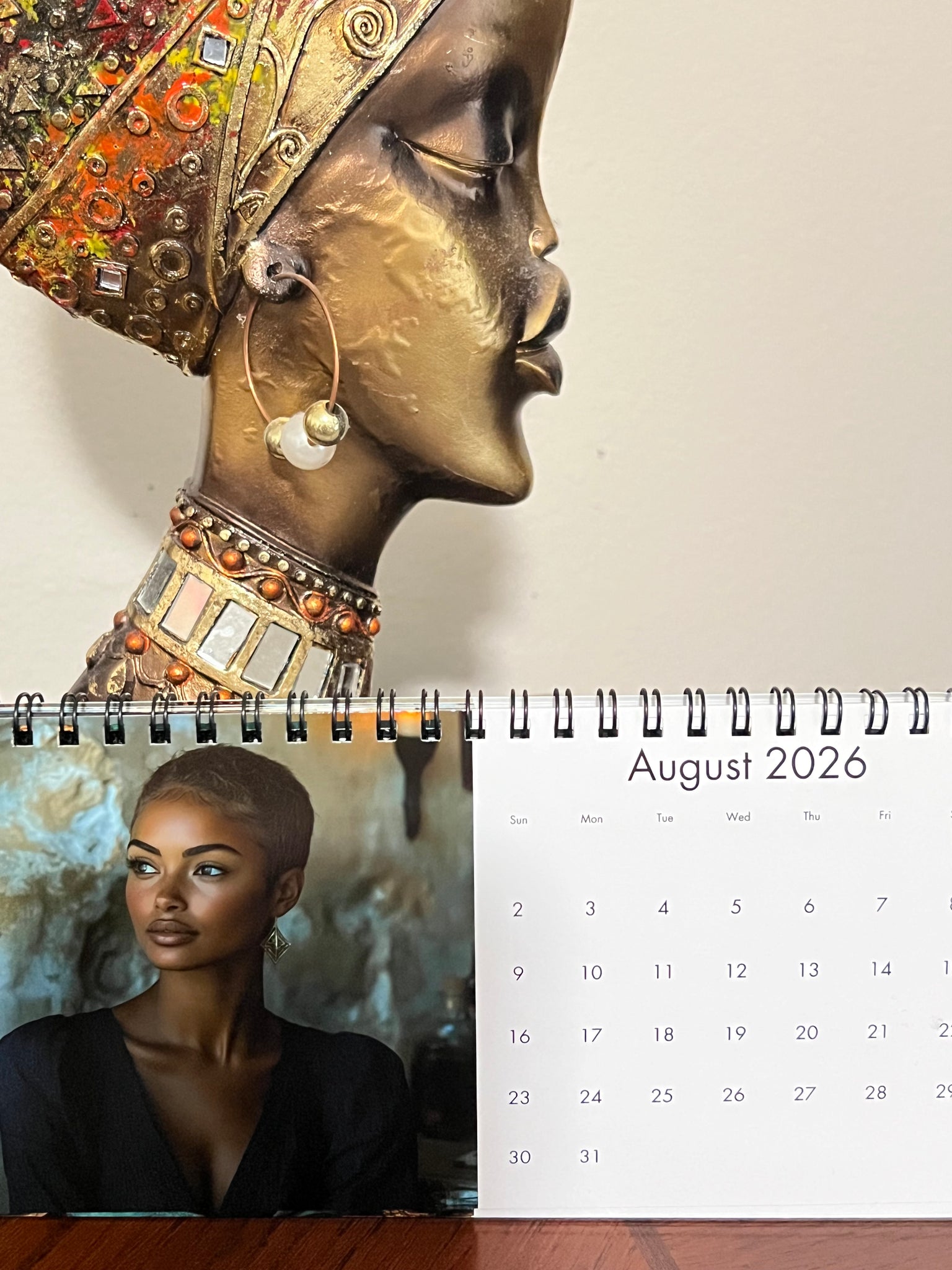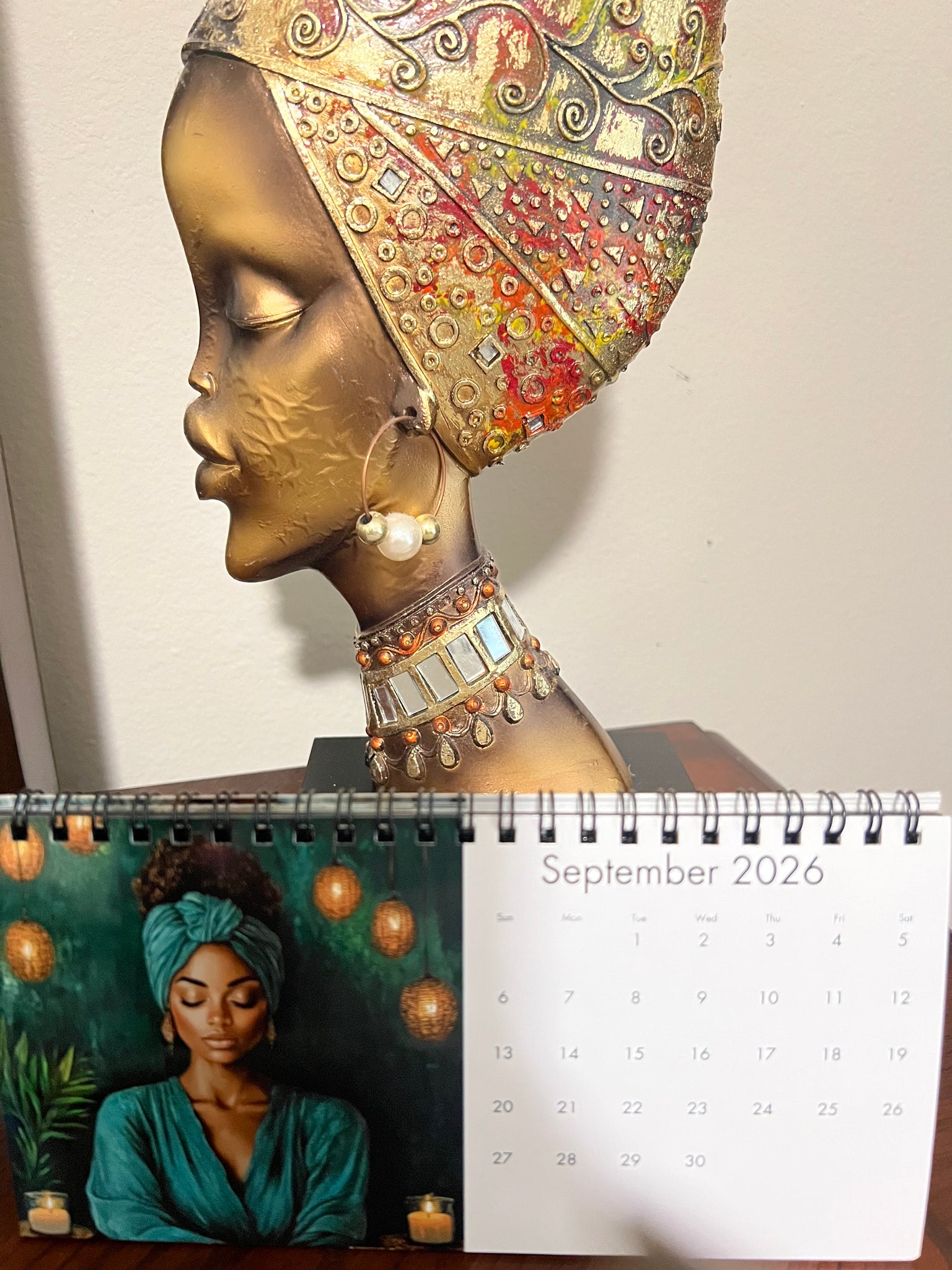 Representation that heals: Each month showcases a stunning, reflective image of an African American woman — bold, beautiful, soft, and strong — the kind of art and elegance you rarely see in mainstream calendars
