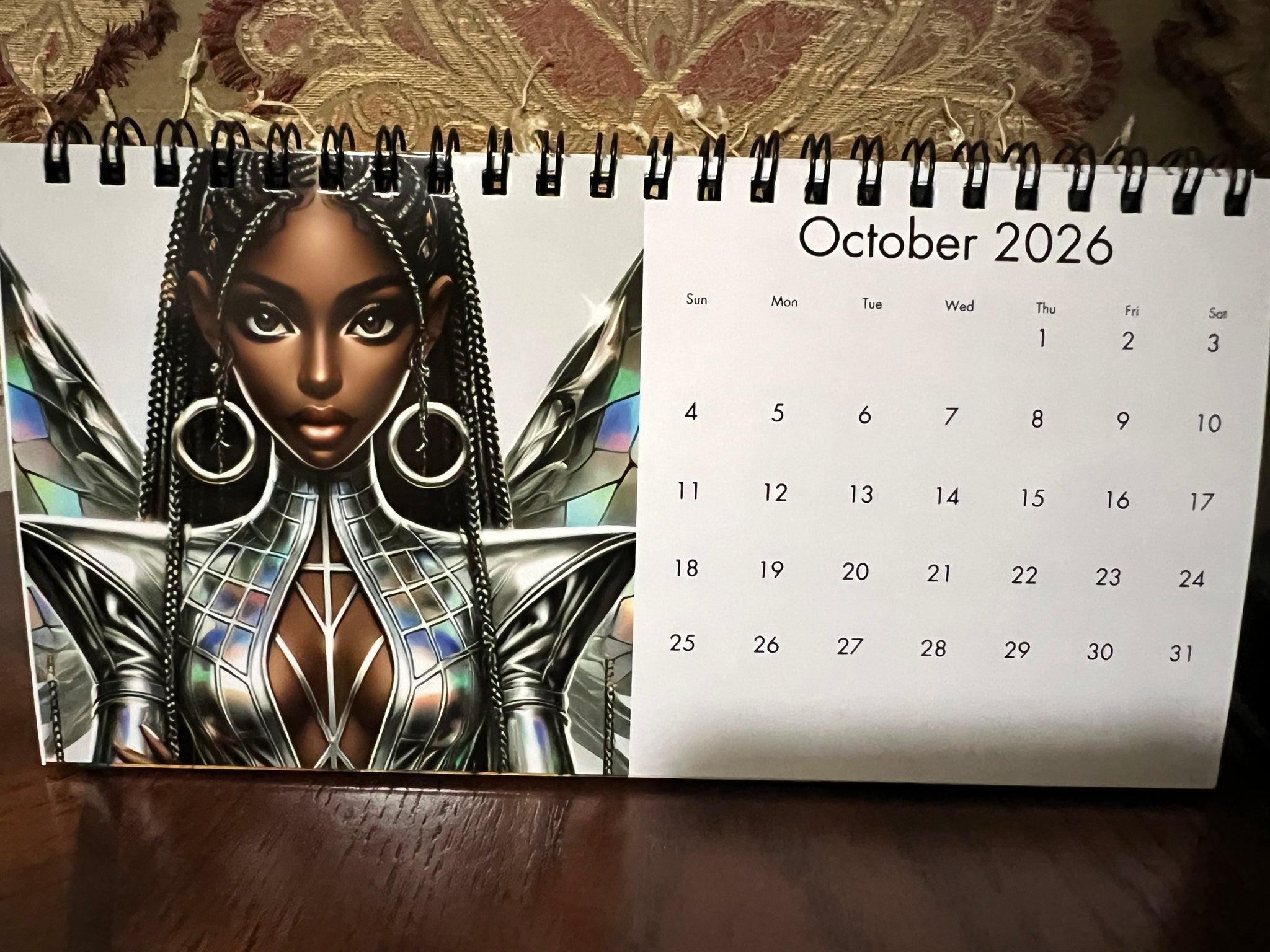 The Boss Butterflies Desktop Calendar celebrates the beauty, power, and transformation of Black women through stunning fairy-inspired illustrations that you won’t find in any store.