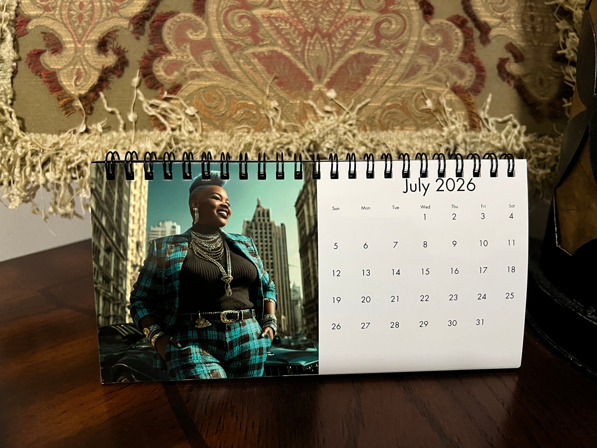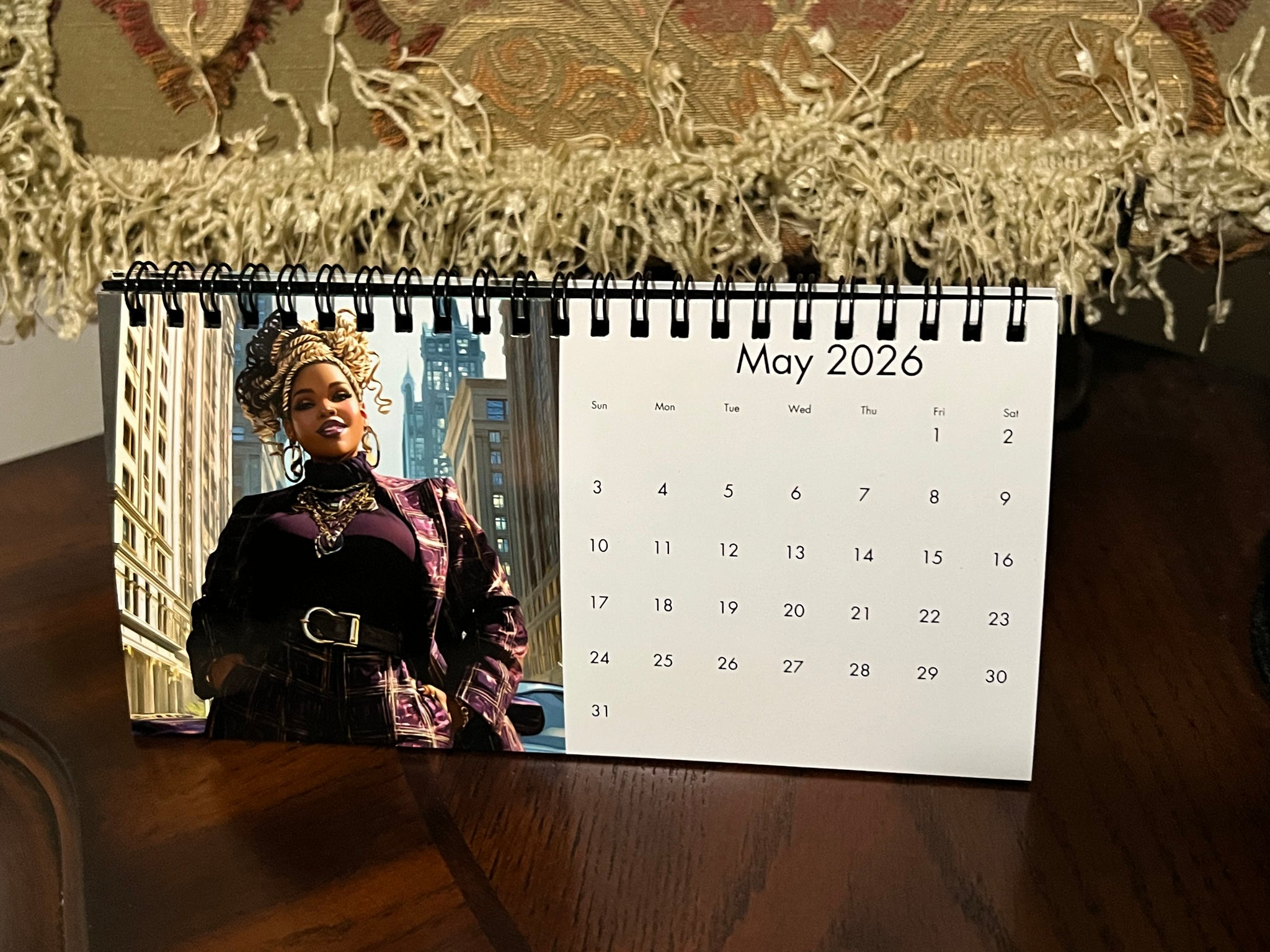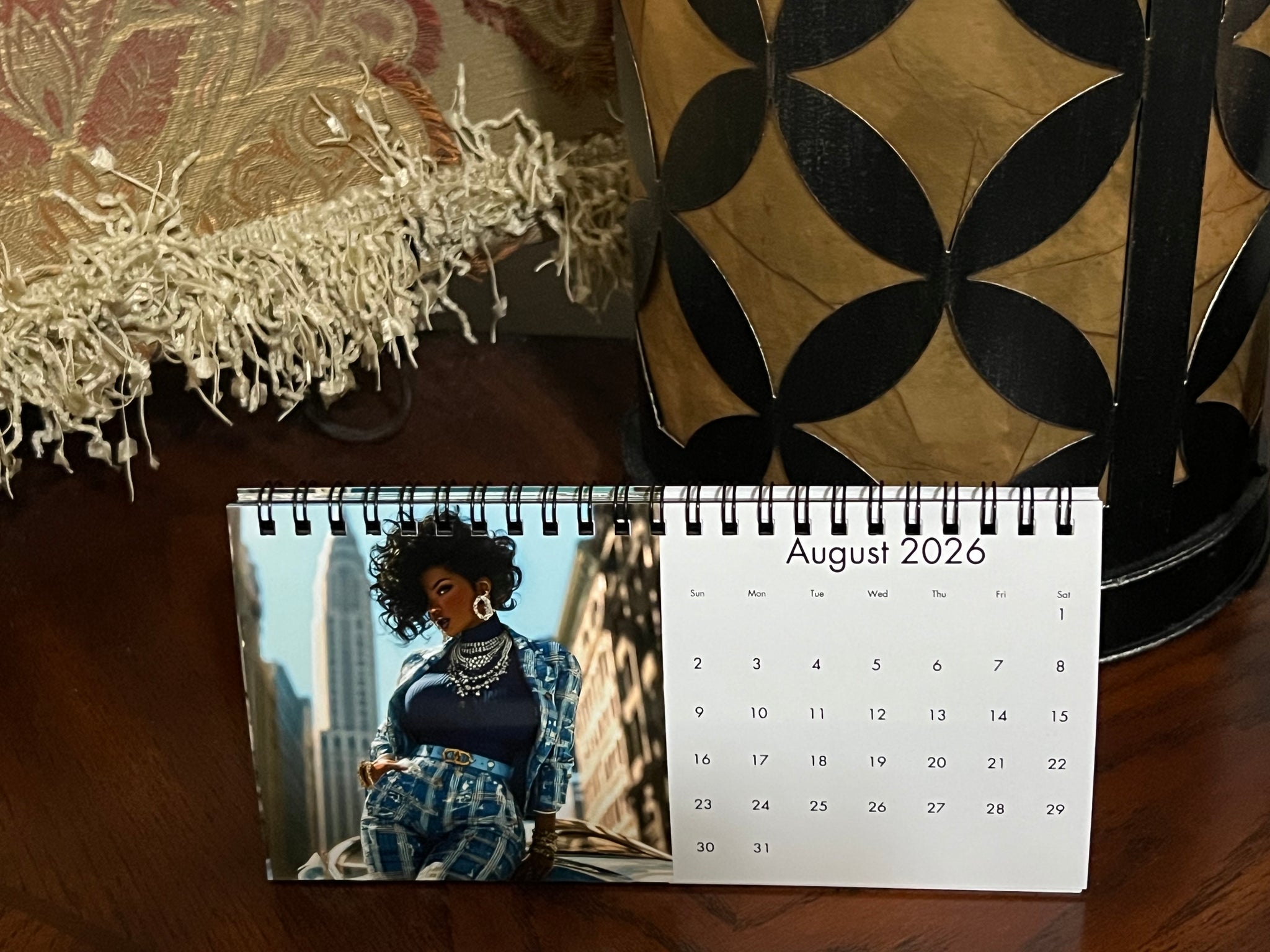 Plaid Is What I Said is a 4 x 8 inch glossy desktop calendar designed for women who move with intention, style, and authority. Each month features bold, fashion-forward artwork set against urban cityscapes — celebrating strength, culture, and unapologetic presence.